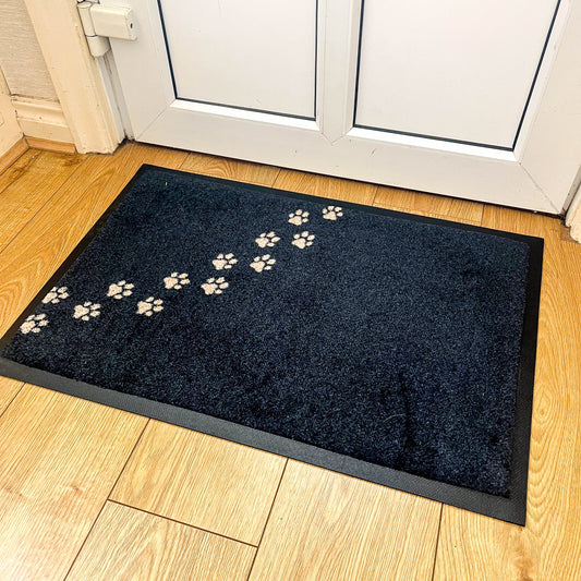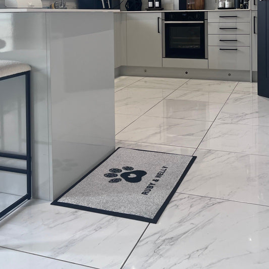 Paw Print Personalised Doormat | Black & Grey